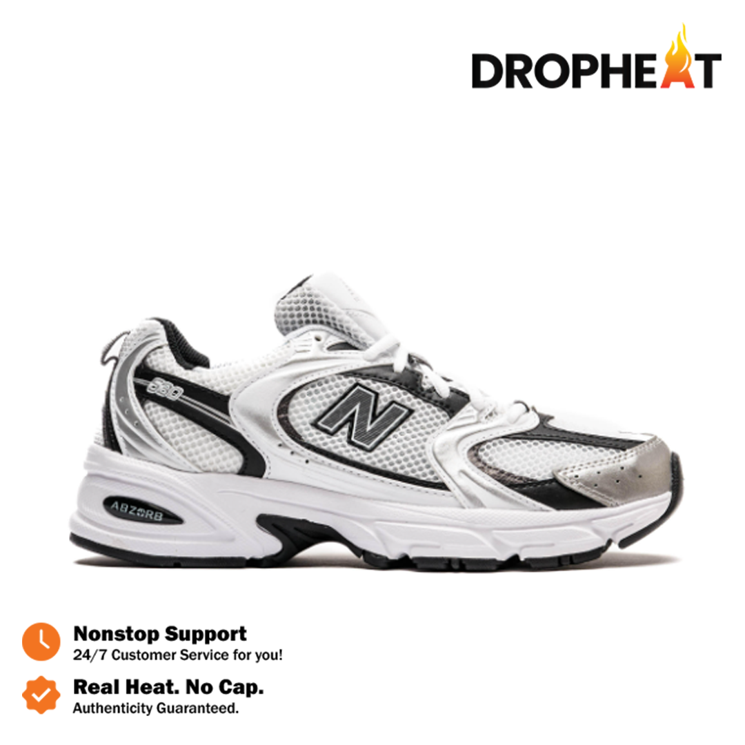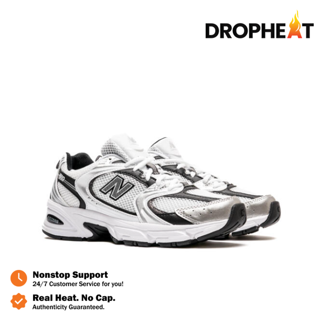 New Balance NB 530 White Silver Metallic Black Sneakers Authentic
